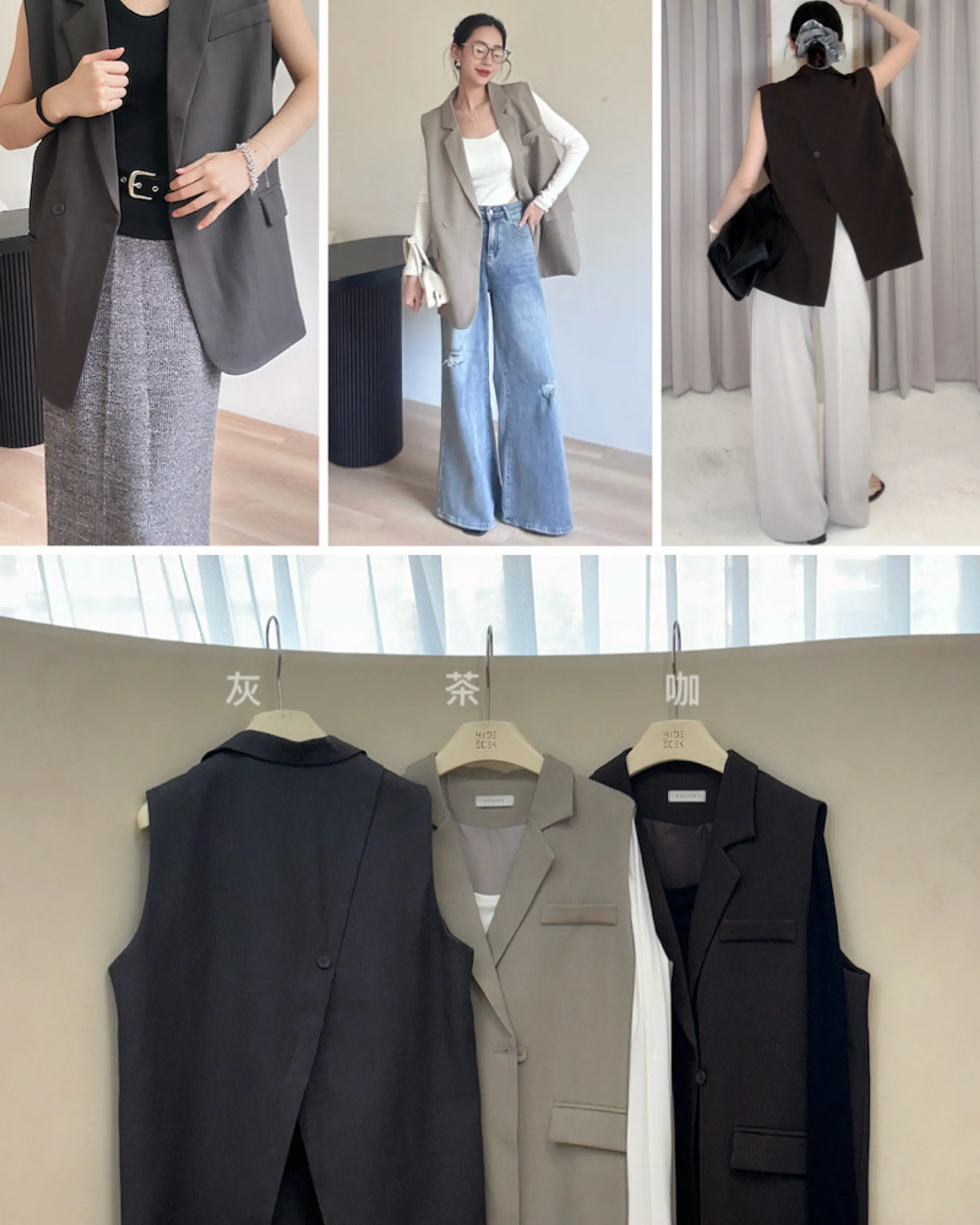 902(茶/灰/咖) 版娘大推~後交叉西裝背心