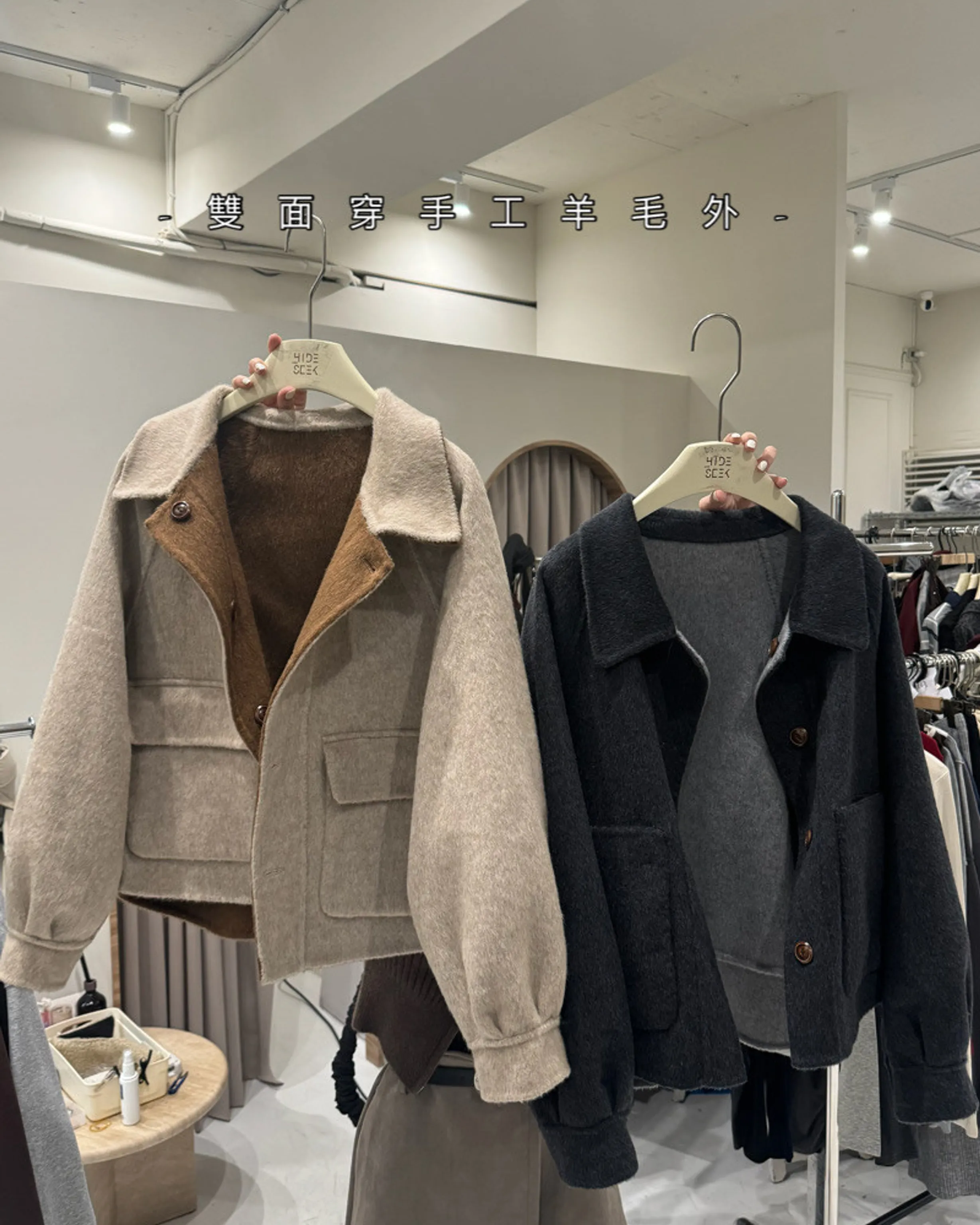 2902(奶/灰)大推!!!!!!雙面穿手工羊毛外