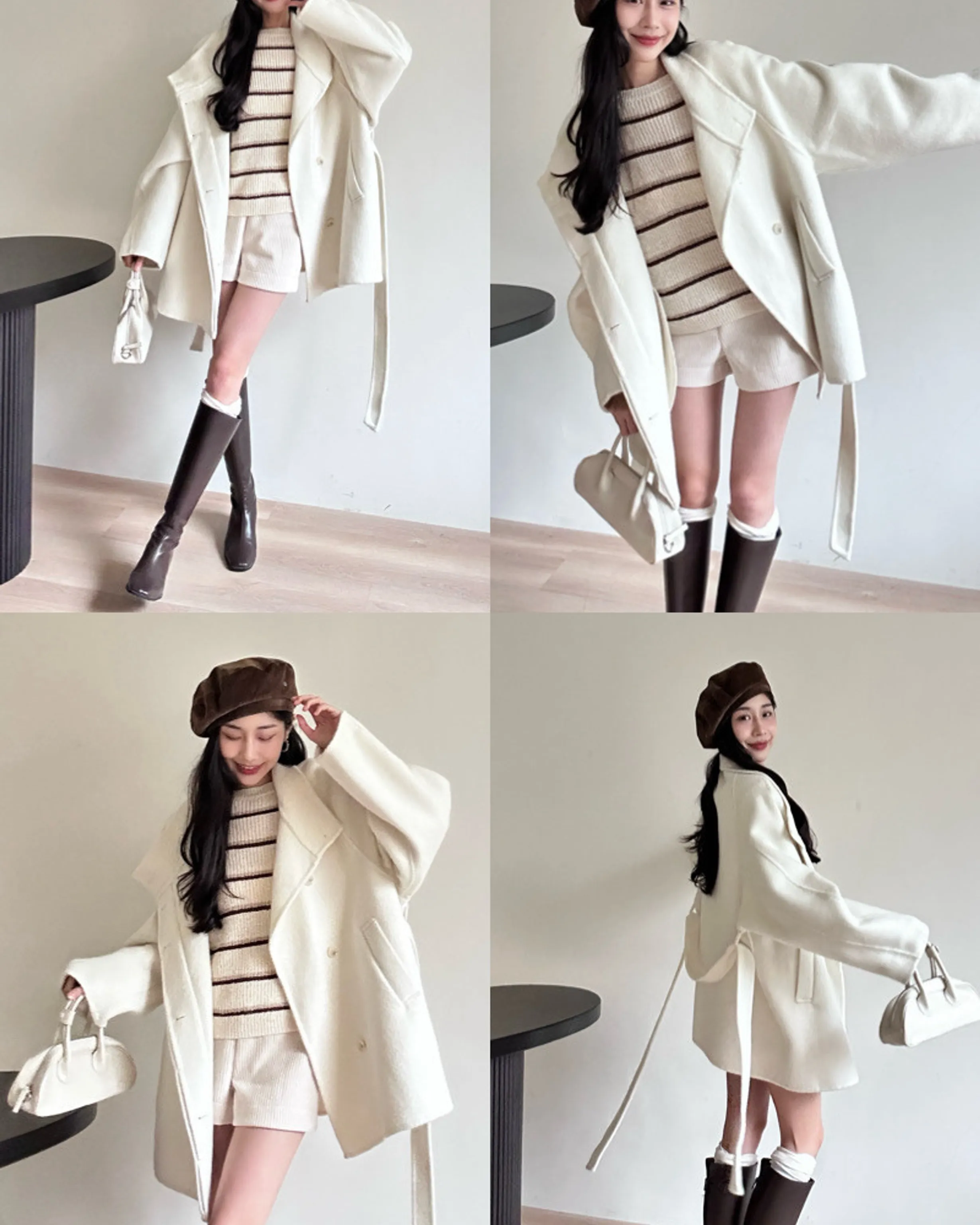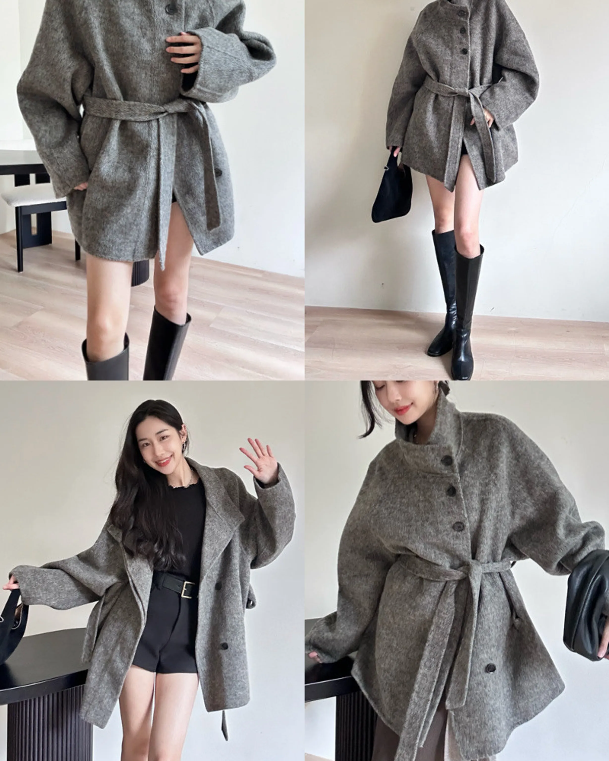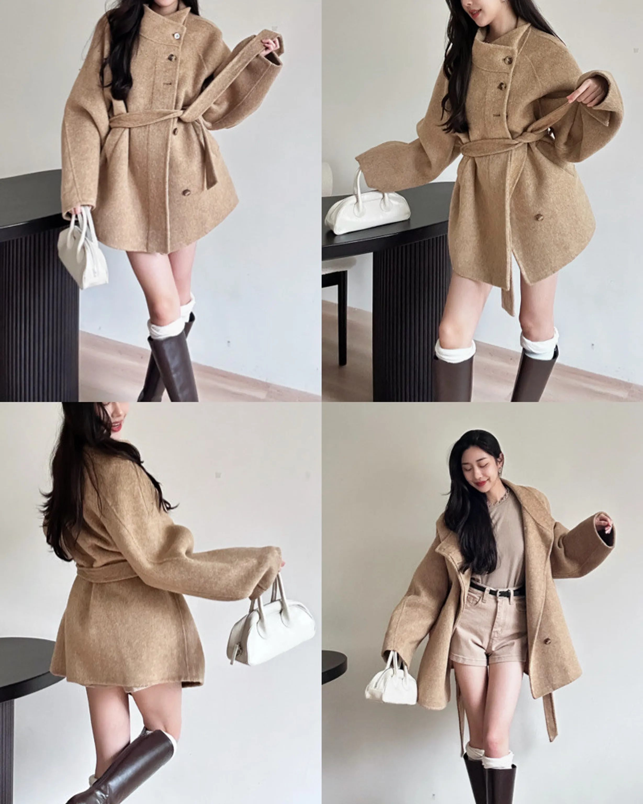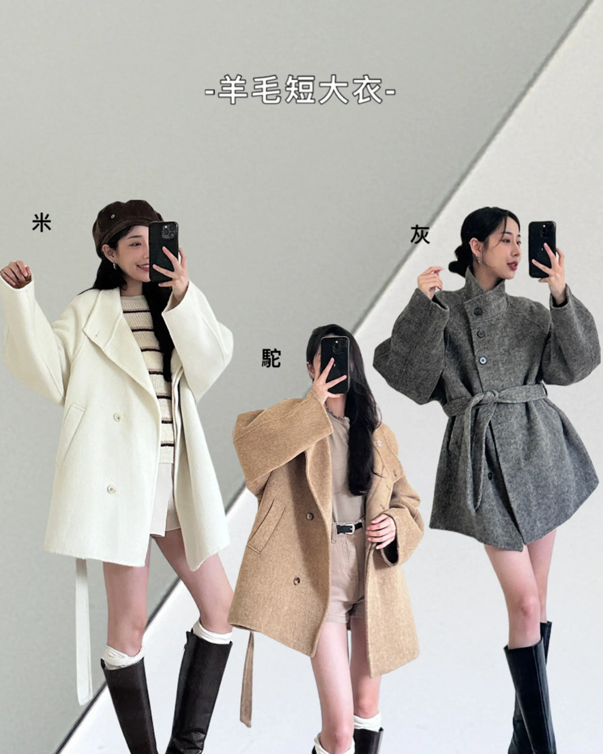 2906(駝/灰/米)羊毛翻領短大衣