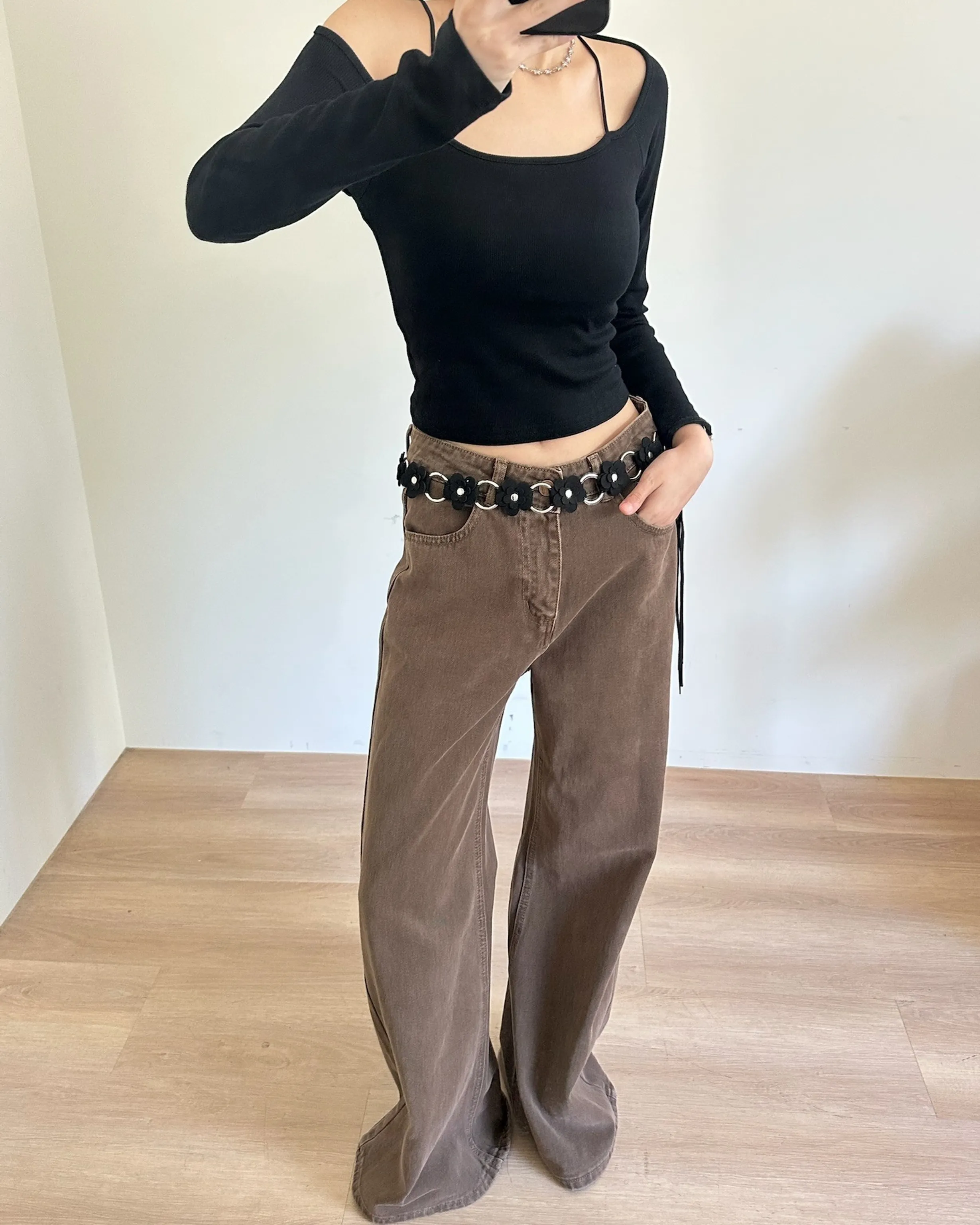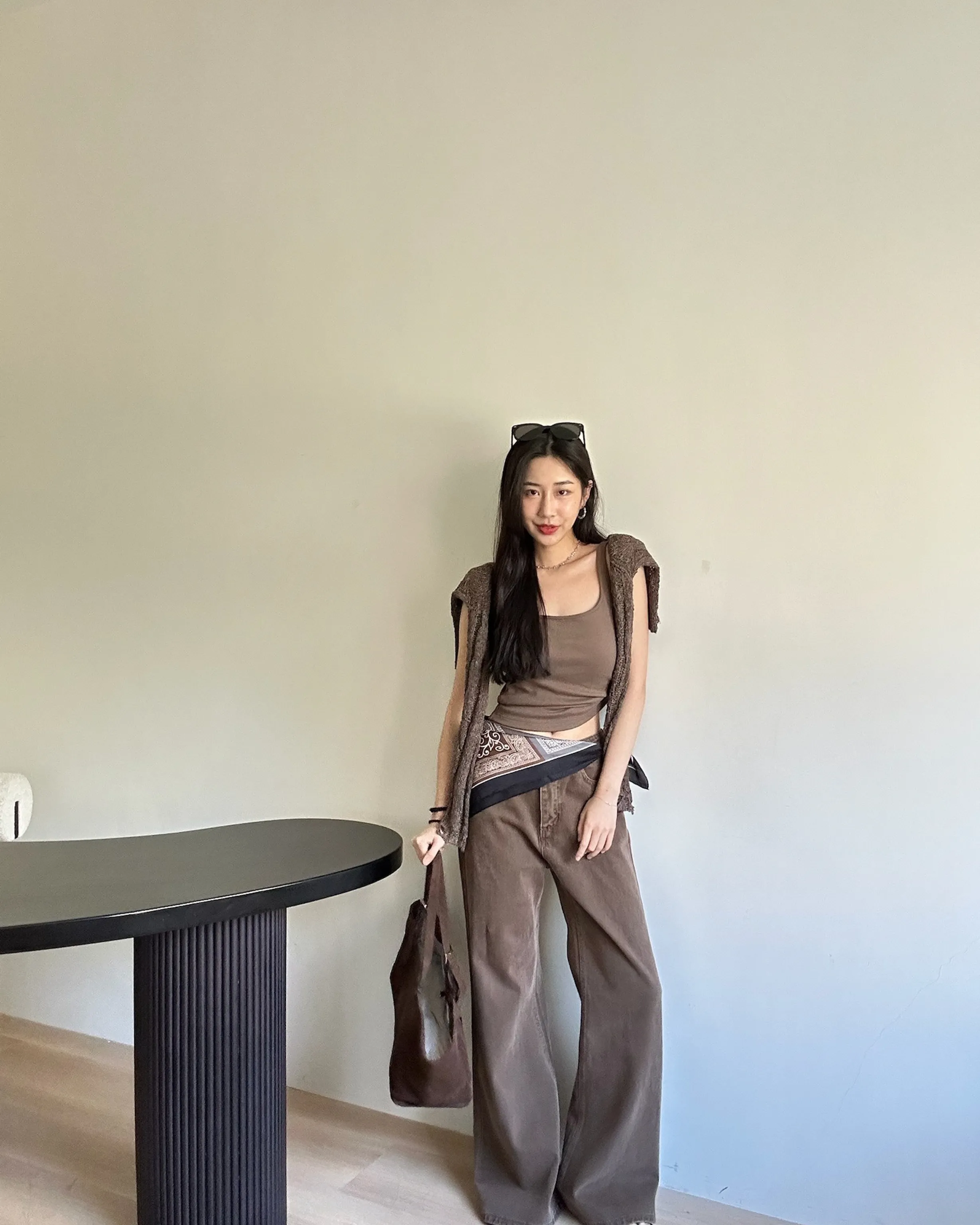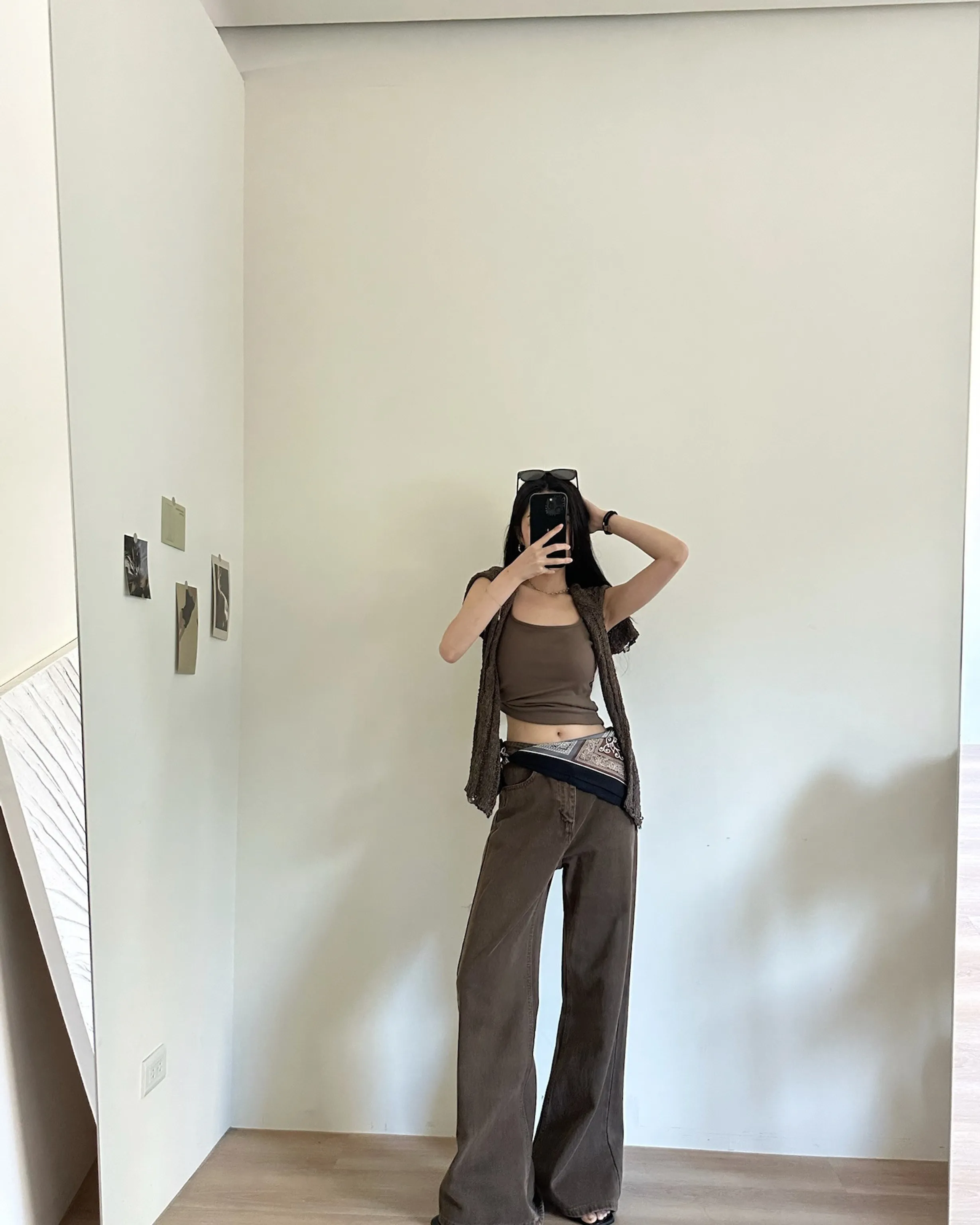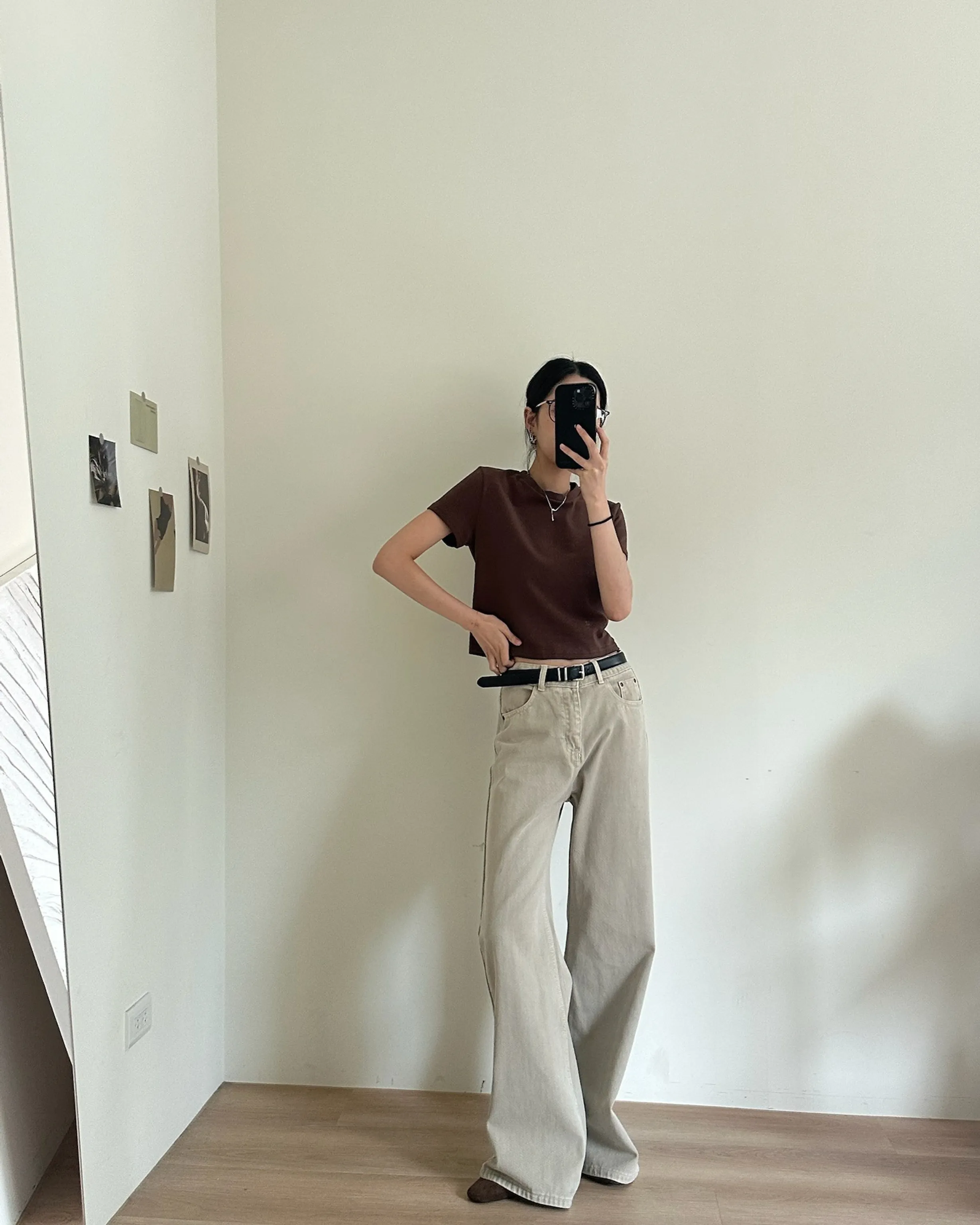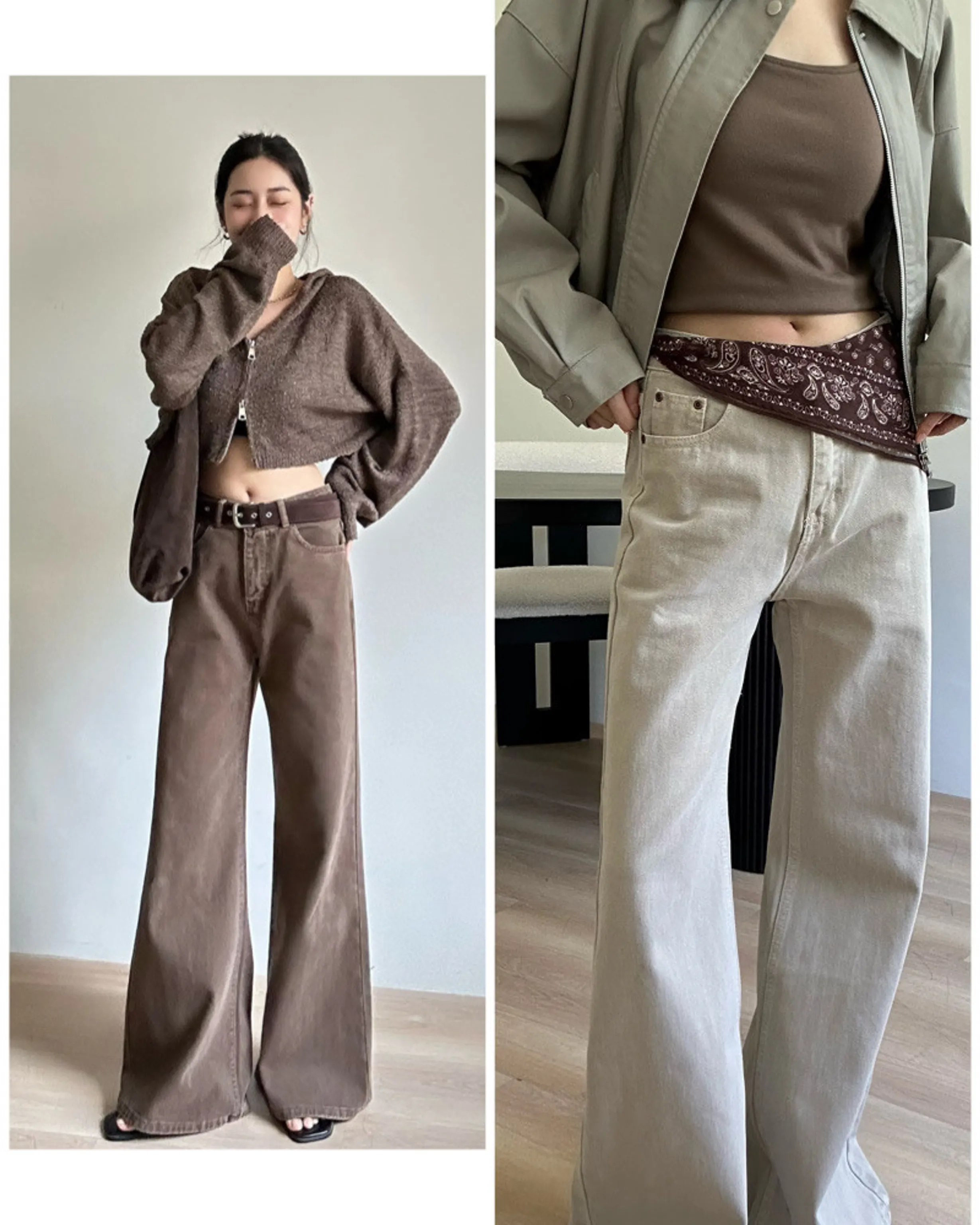 1809(奶/咖) 版娘大推~高腰長腿牛仔喇叭褲