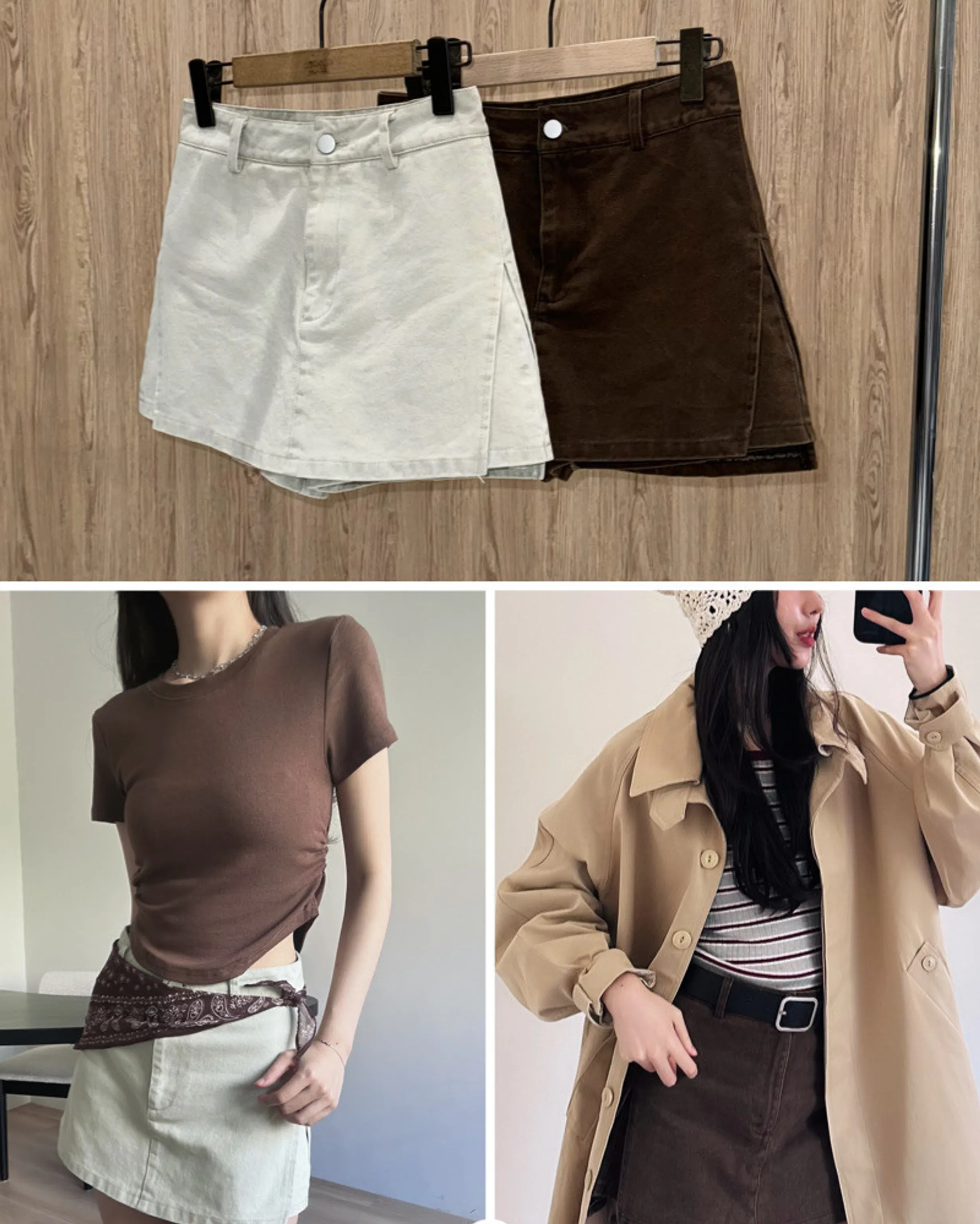 1906(咖/杏) 超瘦側開岔短褲裙!!!!!!