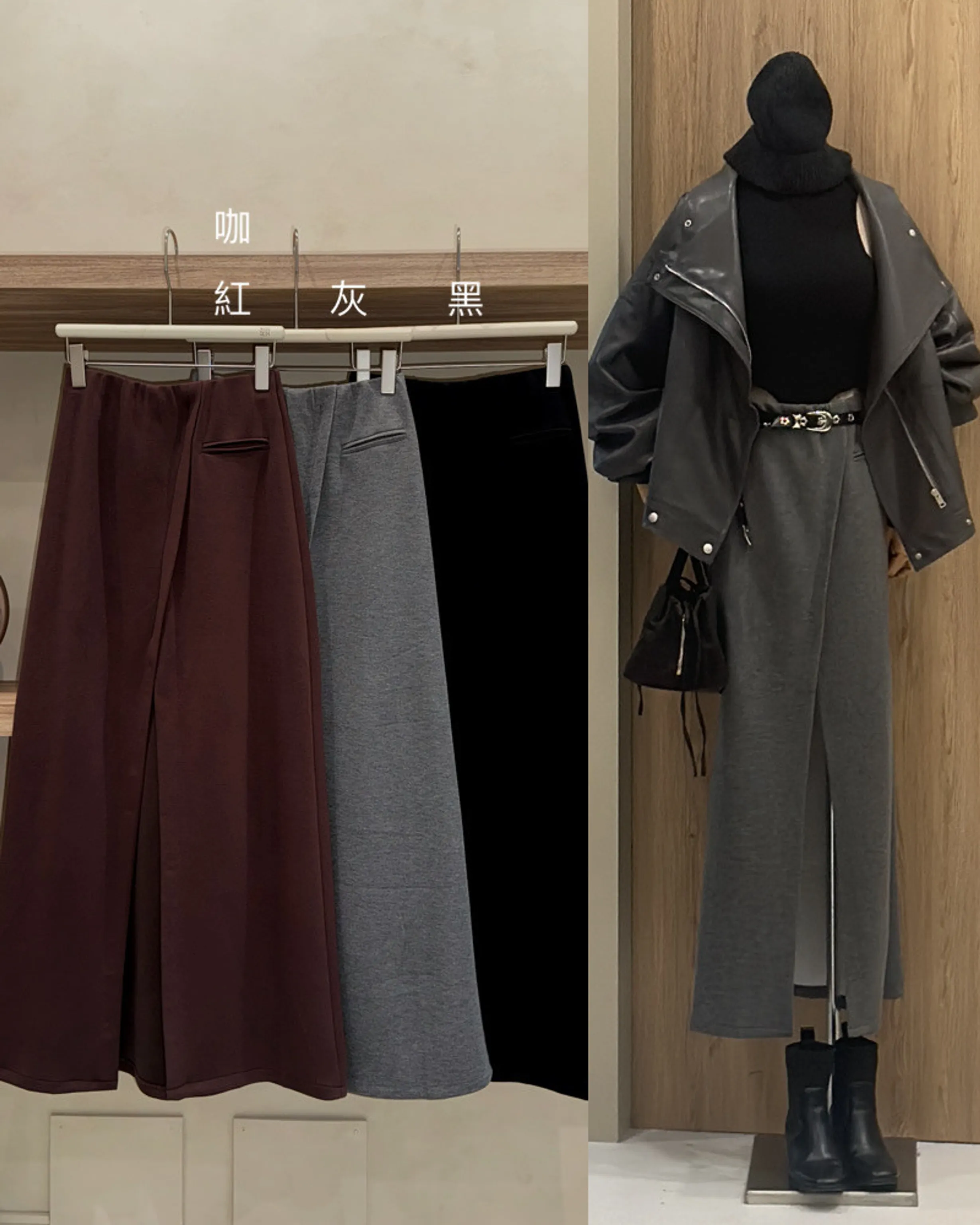 912(黑/咖紅/灰)大推必買!!!!!極舒服前開岔長裙