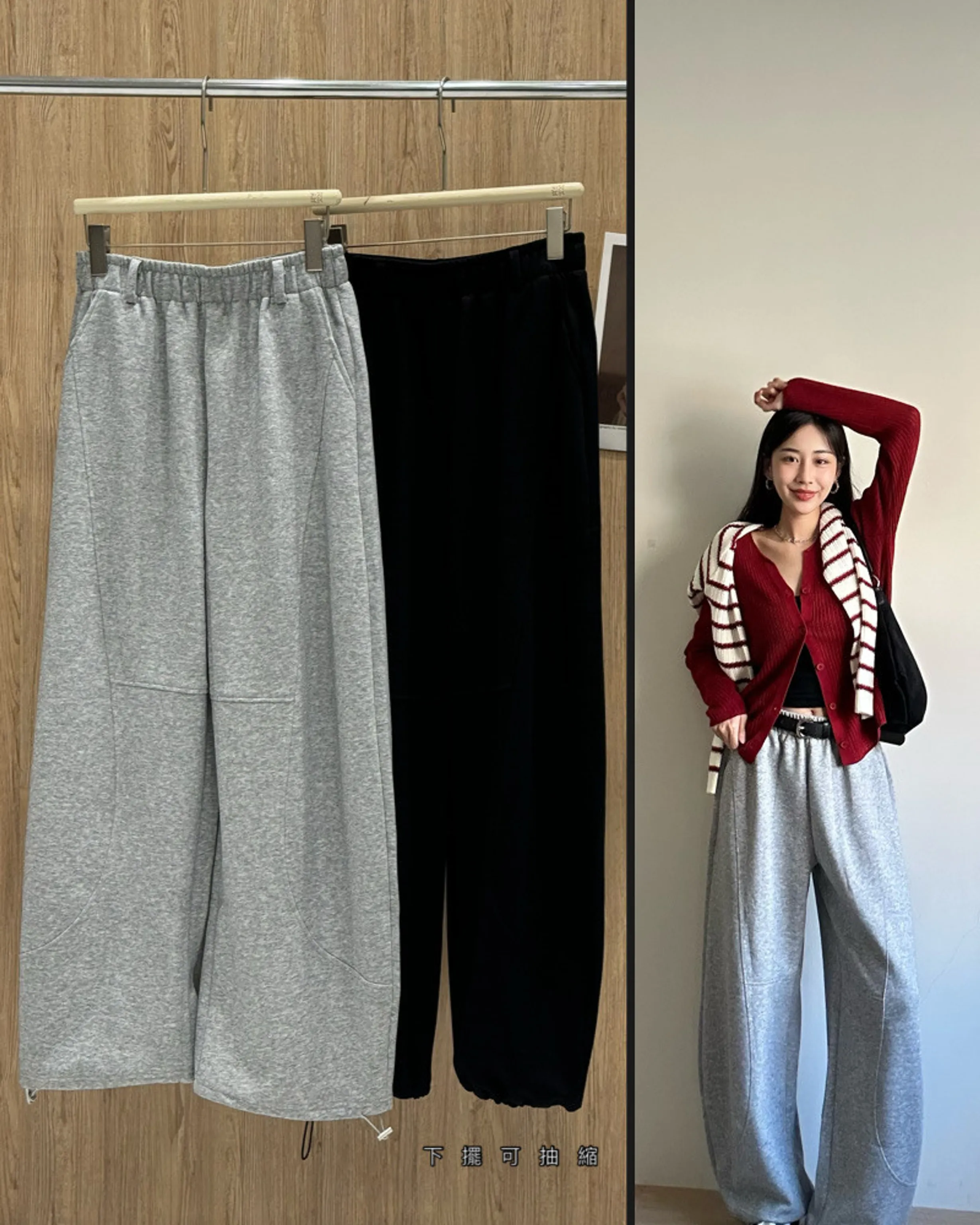 1606(灰/黑)繭型棉褲 「褲腳可縮」