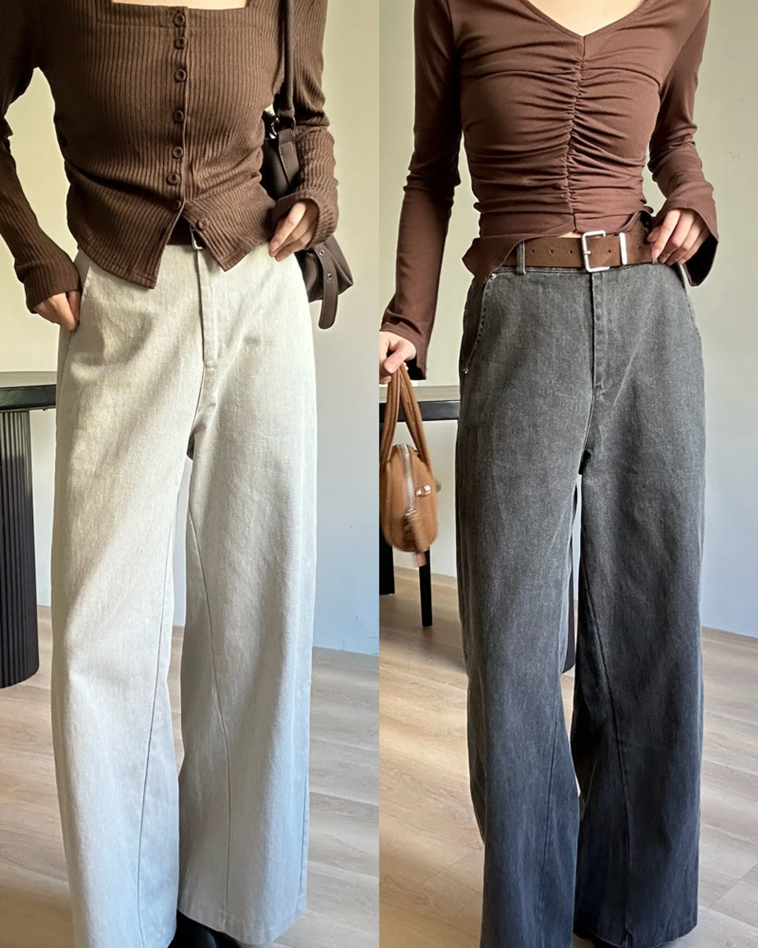 1708(奶/灰)後鬆緊直筒直腿褲!!!!