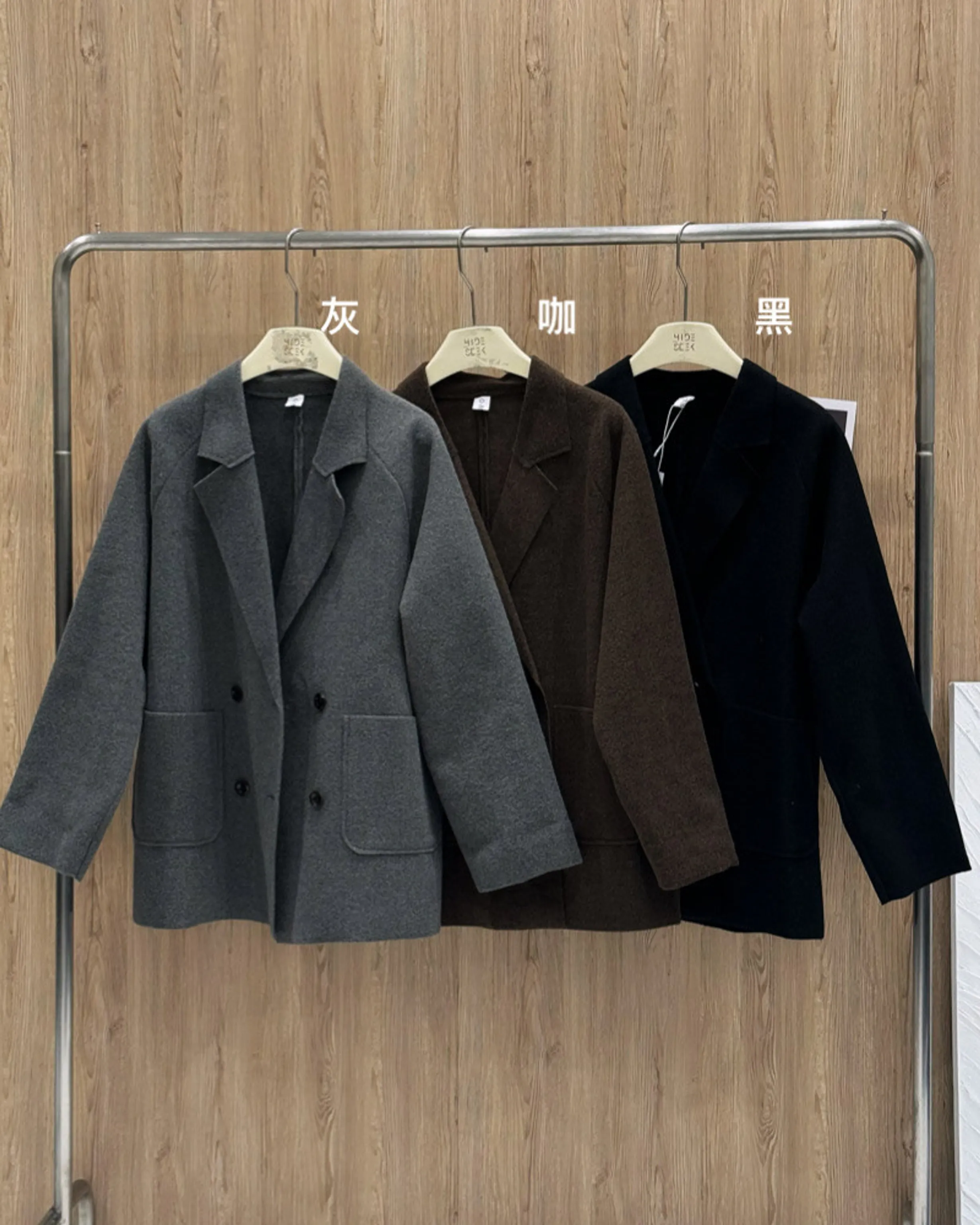 1712(黑/灰/咖)雙面毛呢無肩線大口袋外