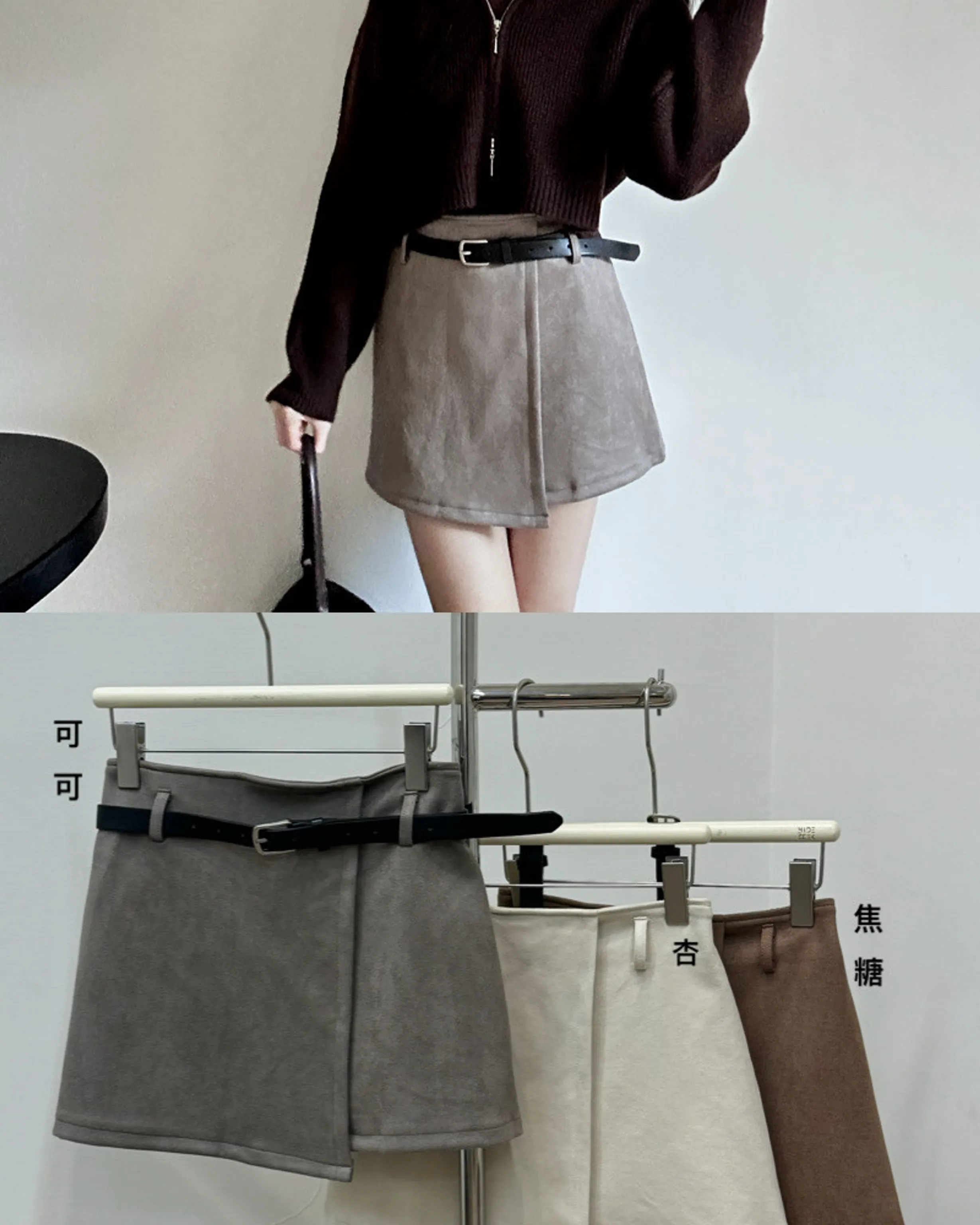 2905(焦糖/可可/杏)麂皮絨短裙