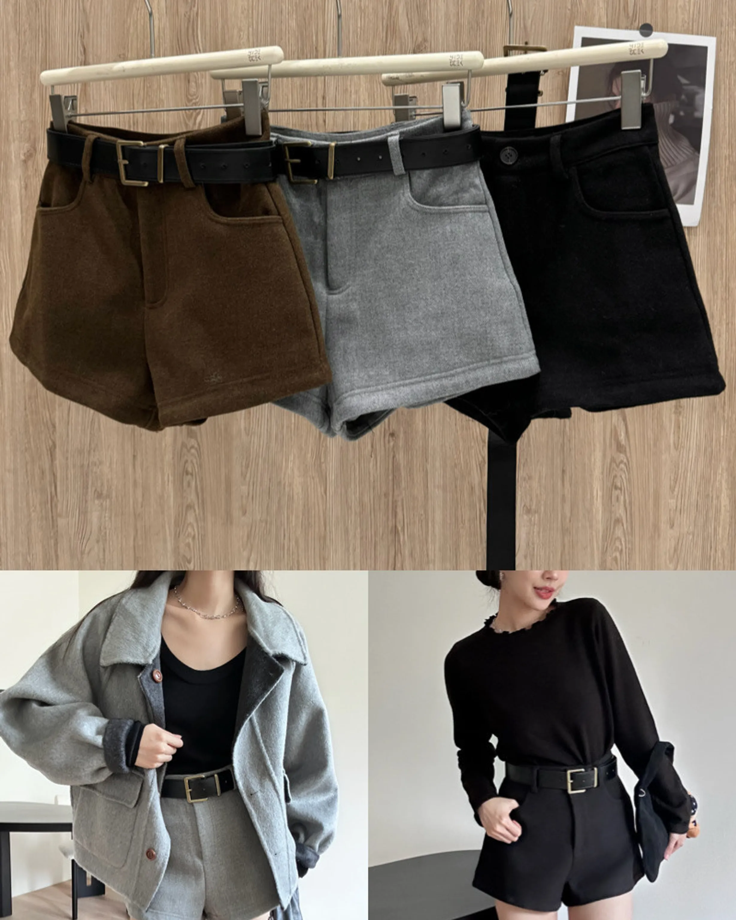 3009(黑/灰/咖綠)女團感毛呢短褲