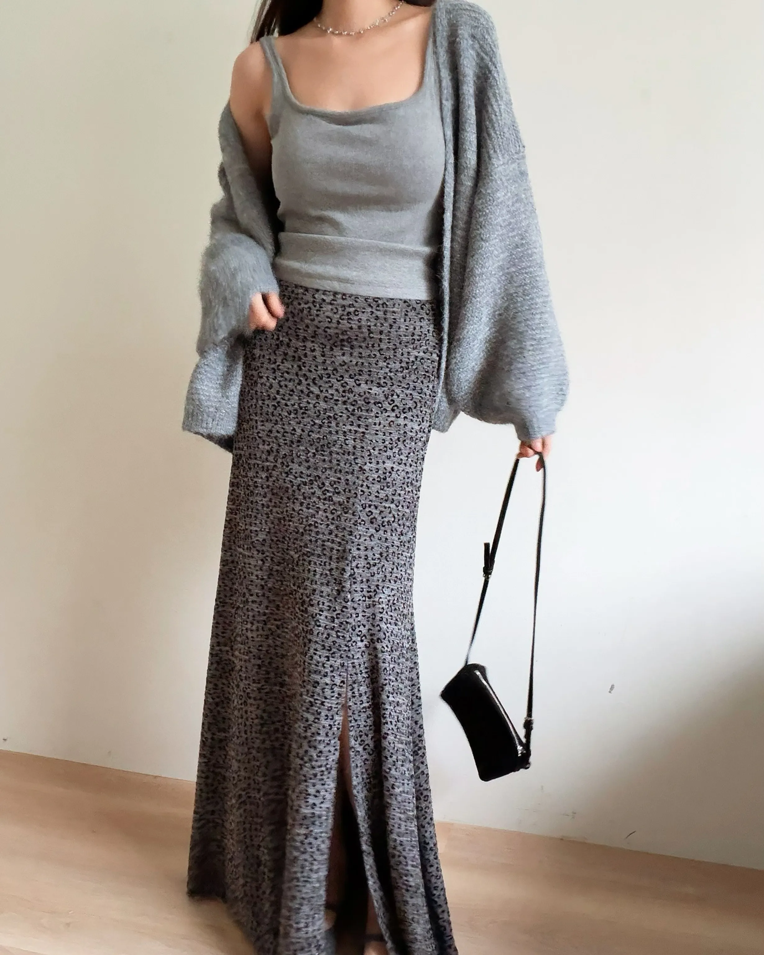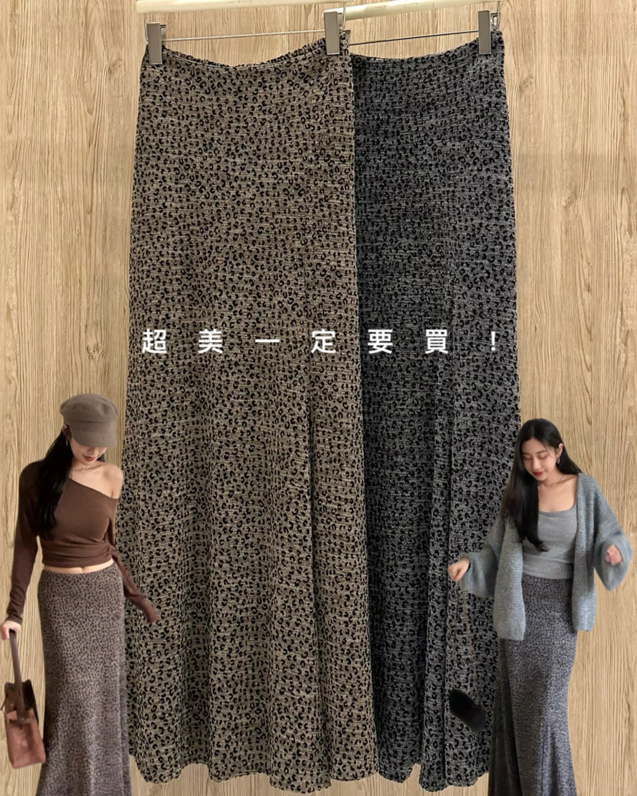 1404(咖/灰)大推必買 ~超美豹紋魚尾裙