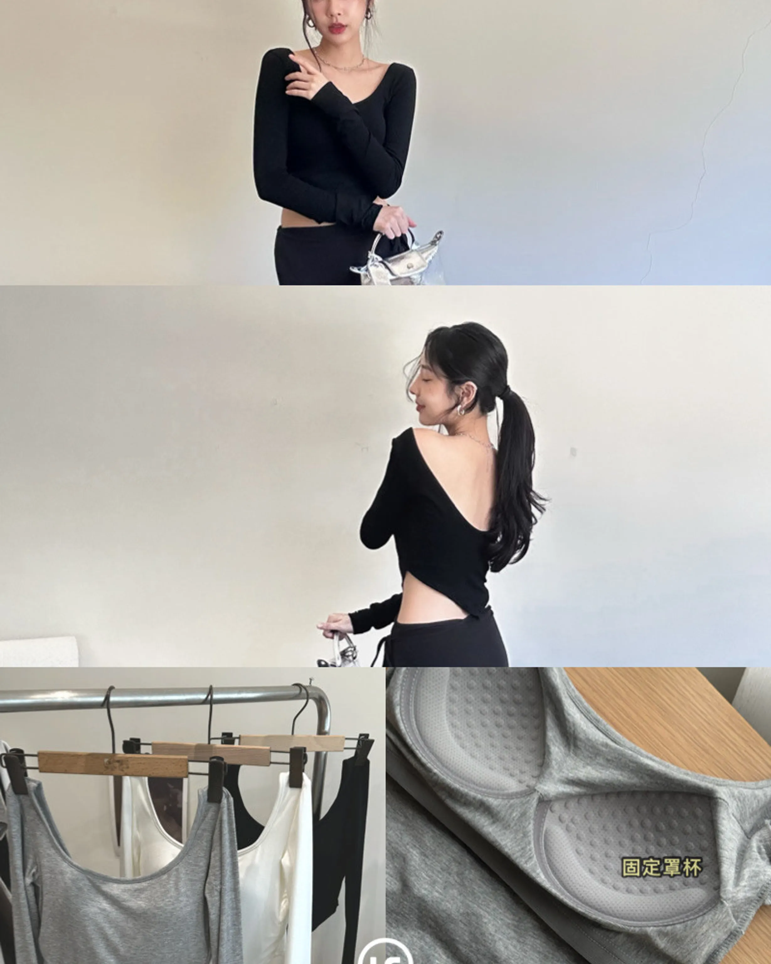 112(黑/灰/白)必買必包色!超級美小心機上衣(固定罩杯)