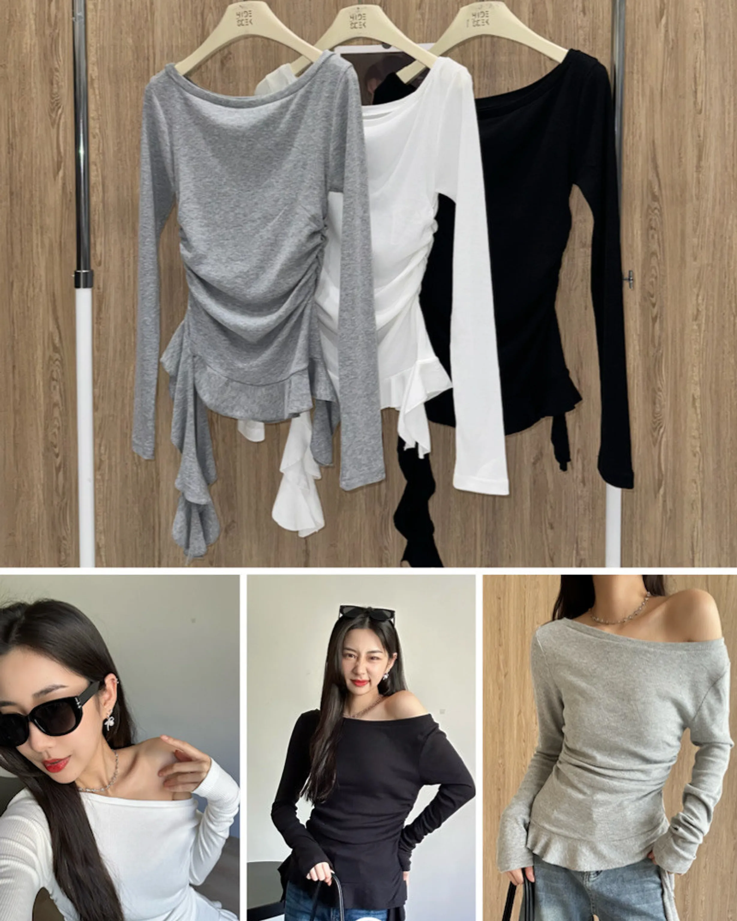 1928(黑/白/灰) 韓!可拉肩造型上衣