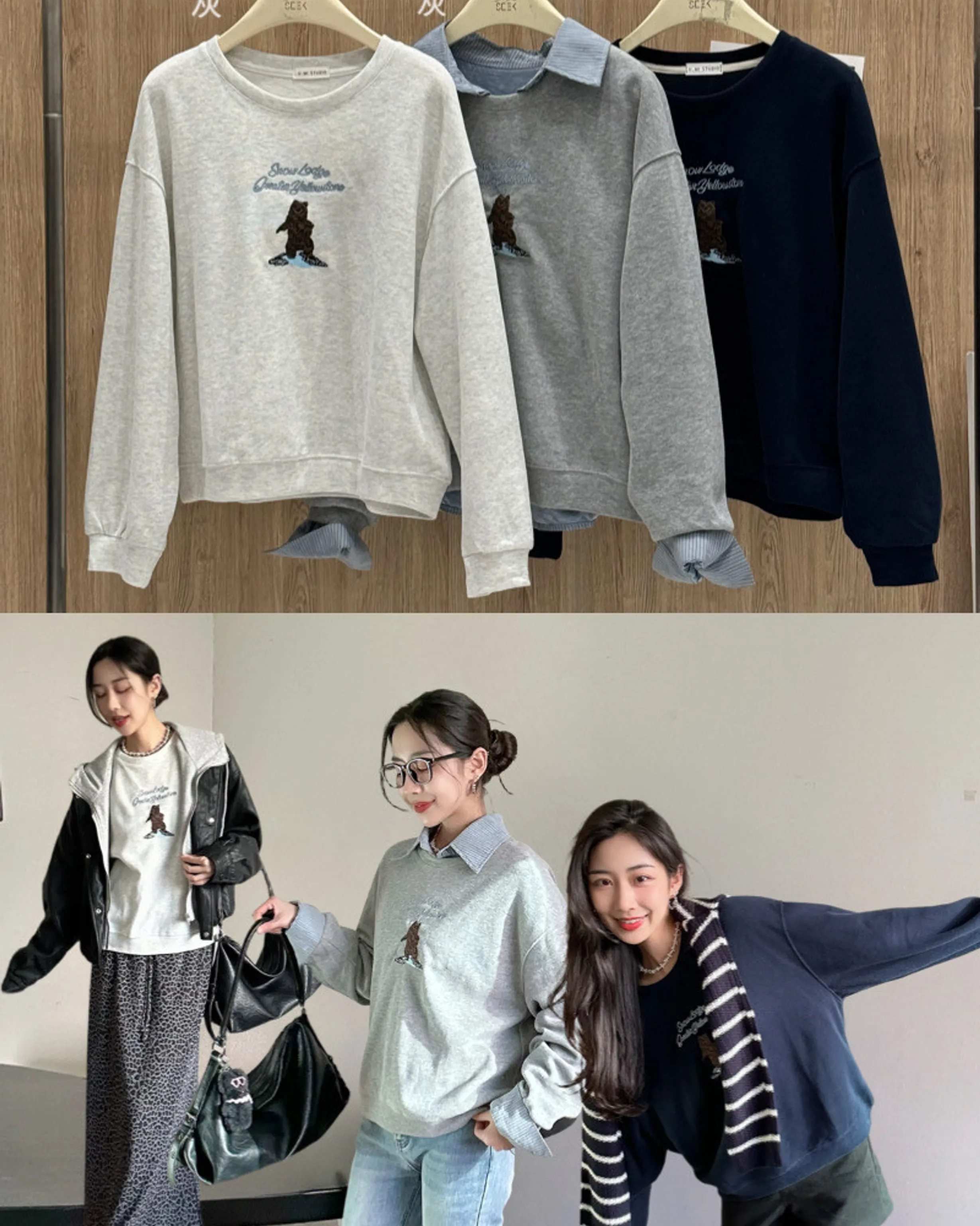 1724(藍/深灰/淺灰)熊熊衛衣