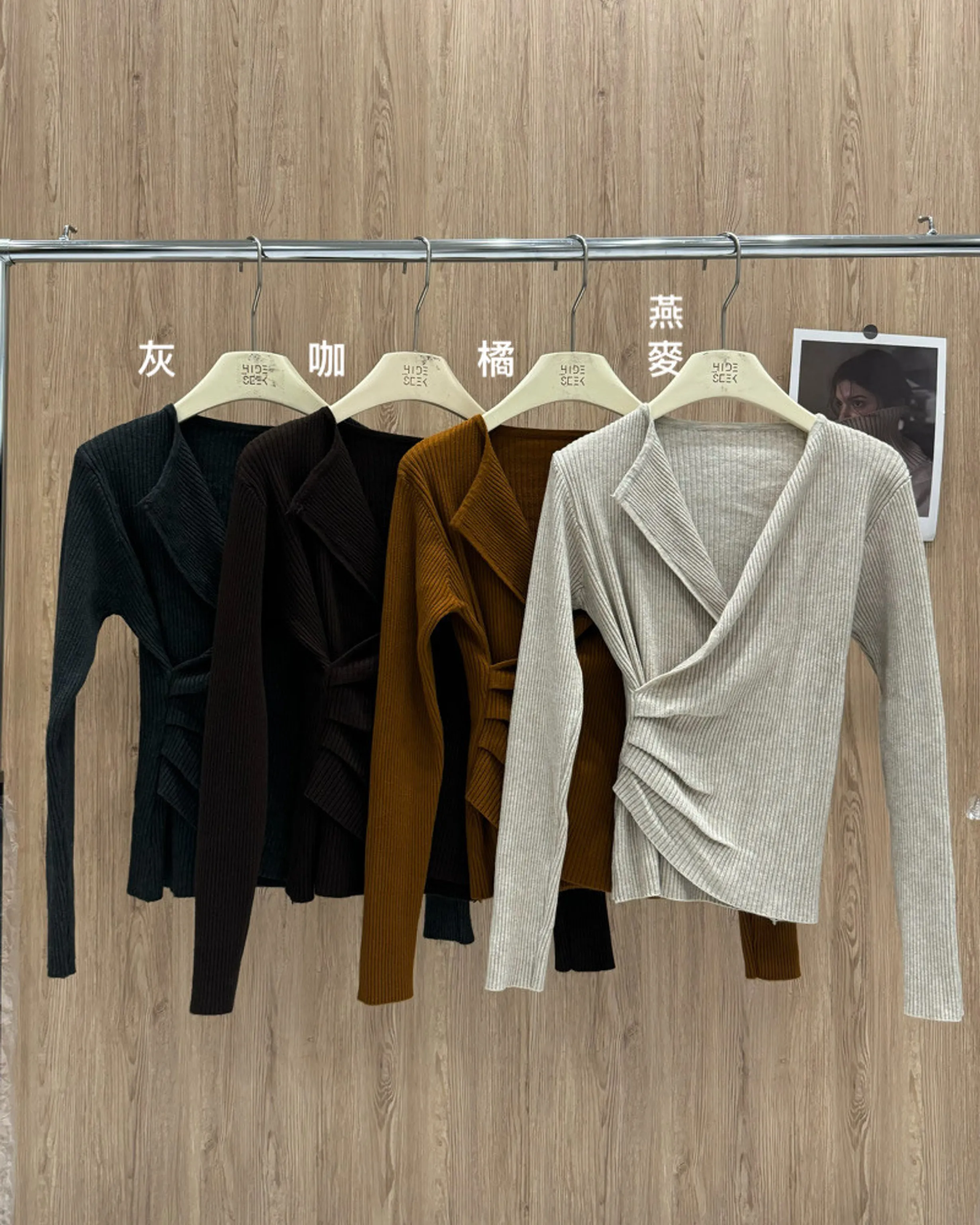3001(四色)小翻領抓腰螺紋上衣