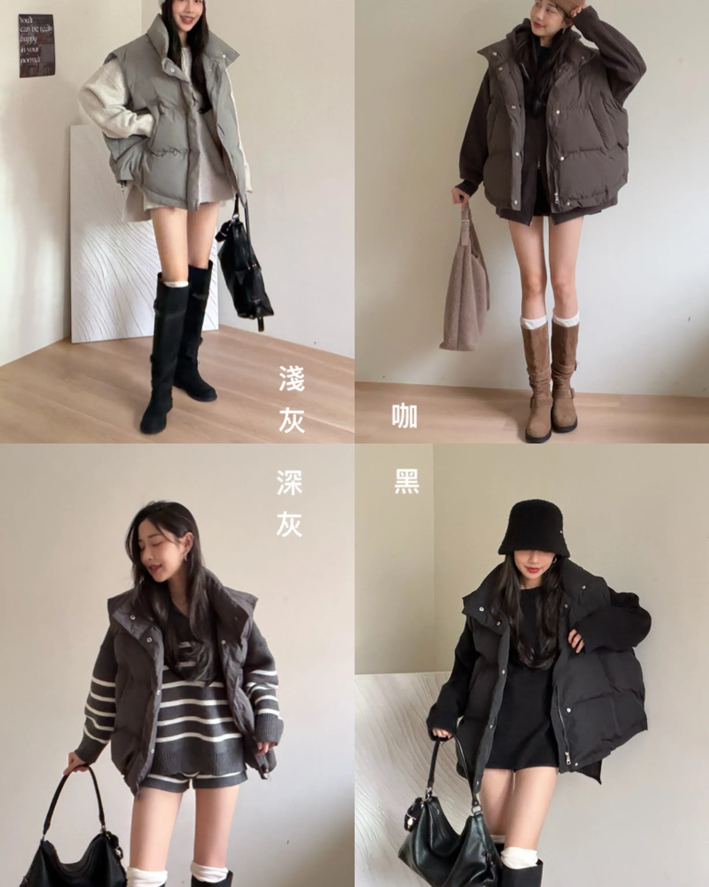 1403(淺灰/深灰/咖/黑)大件鋪棉背心